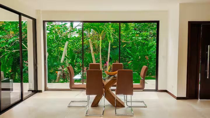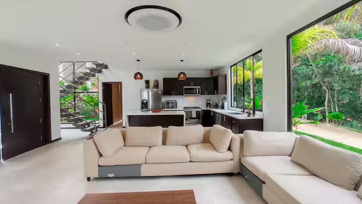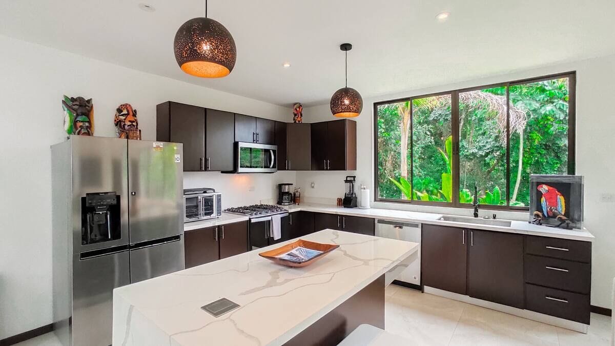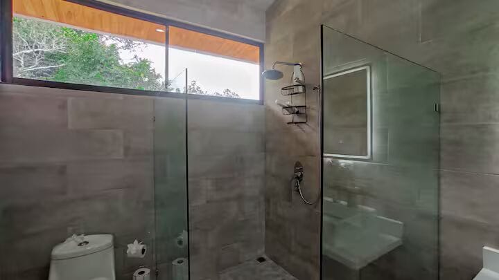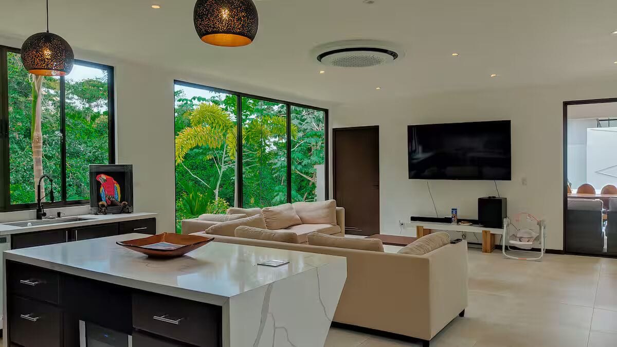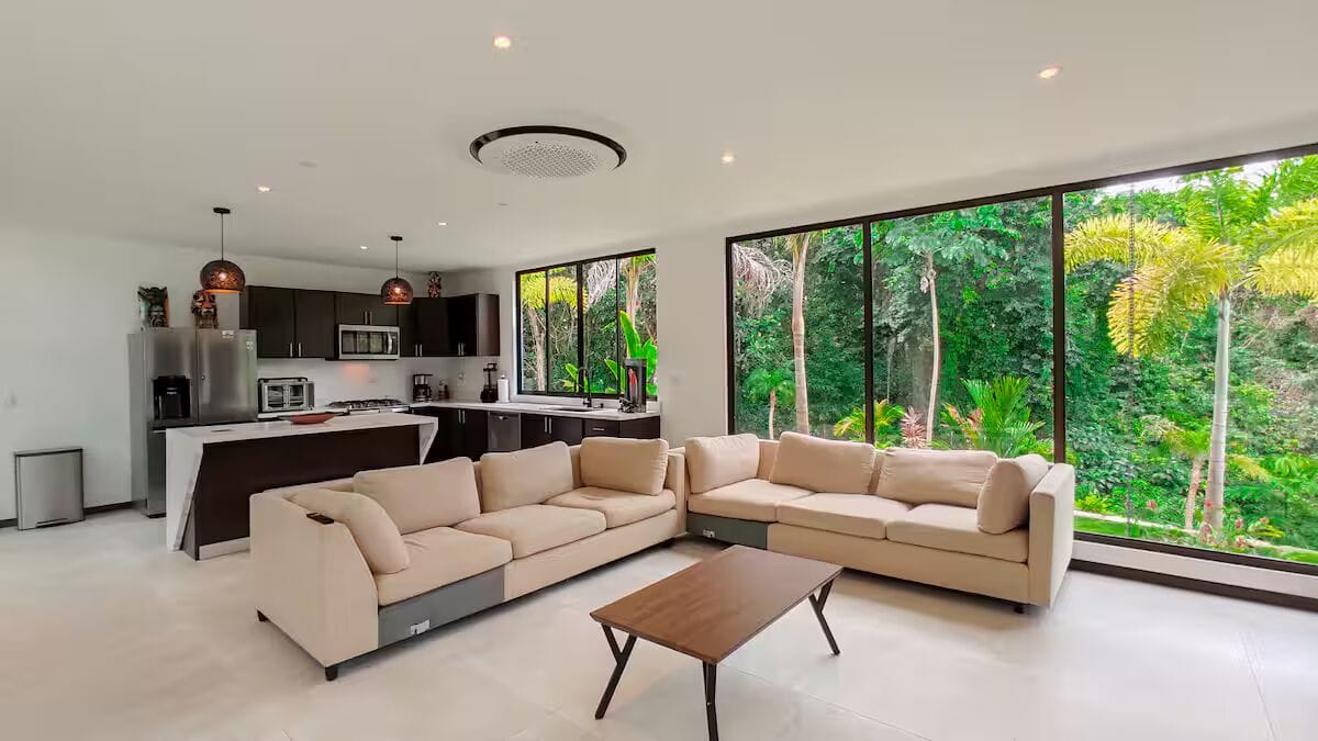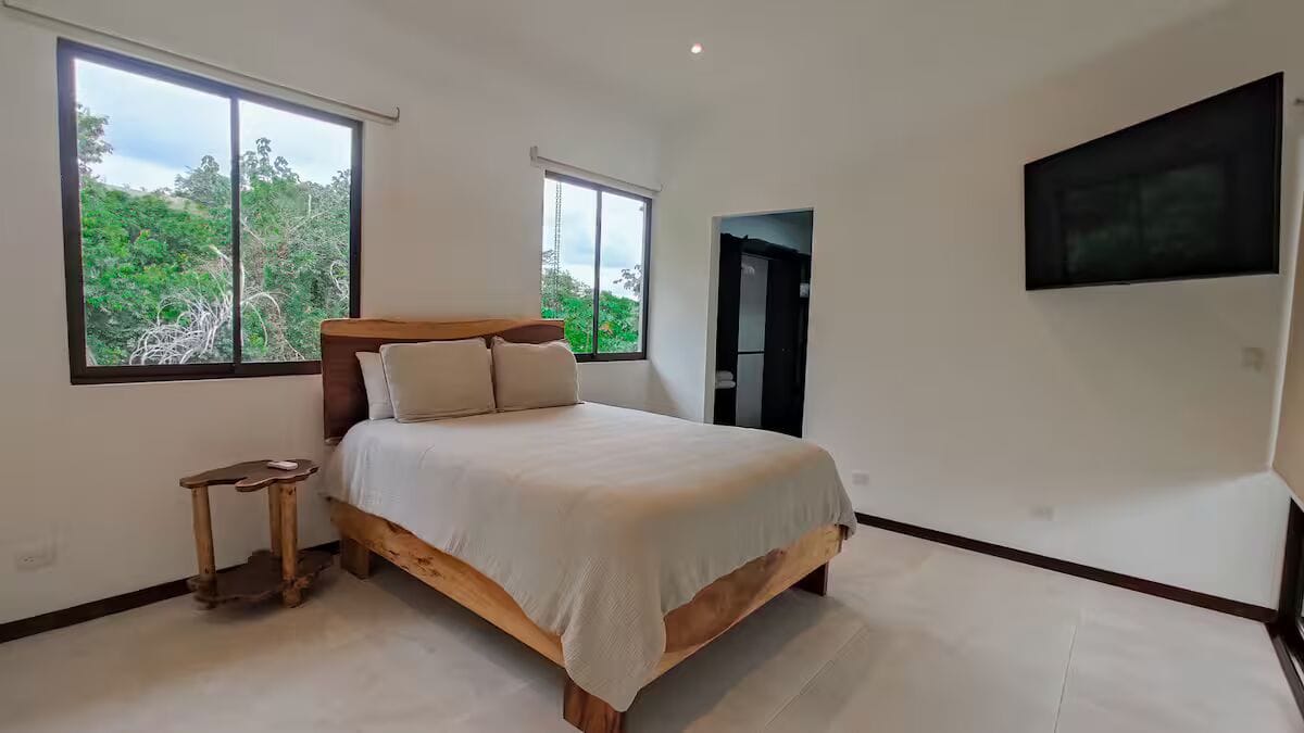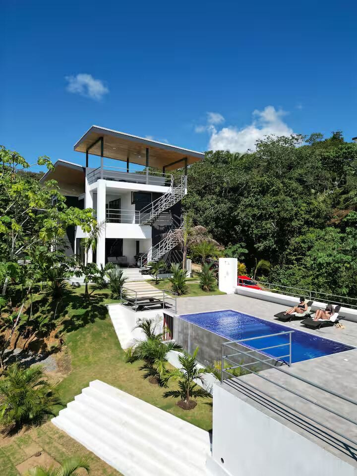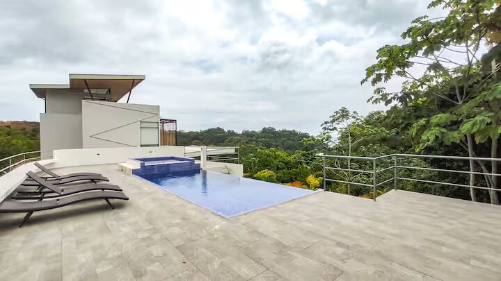 -The Toucan House at The Sanctuary is a modern three-story, three-bedroom, three-and-a-half-bath luxury home in Playa Hermosa, Costa Rica. Nestled in a lush mountain valley surrounded by guarumo trees, this newly built property offers stunning views, abundant wildlife sightings, and a true Pura Vida lifestyle experience. Each bedroom features its own private bathroom, walk-in closet, and balcony or terrace.